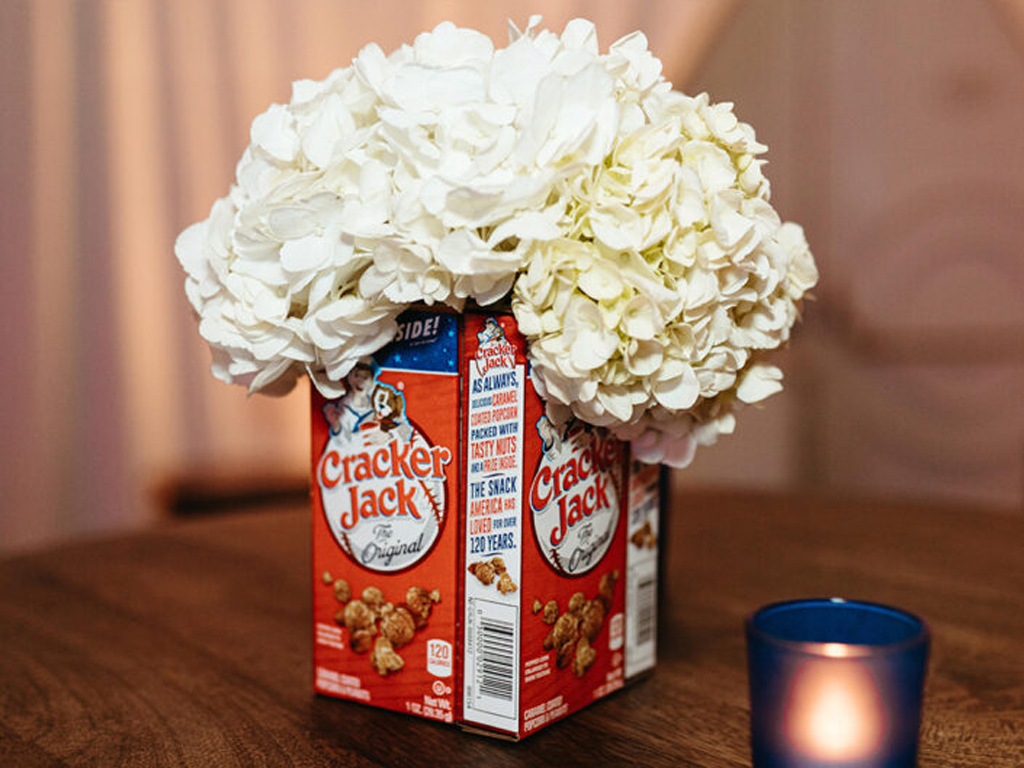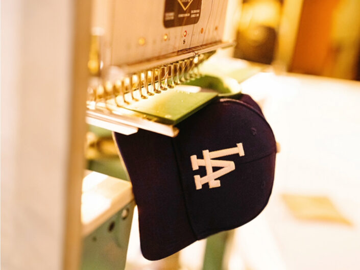 Once the reception doors opened and guests found their seats, the energy hit a whole new level –  the birthday himself took center field to throw out the ceremonial “first pitch” of the night to 10-time Hall of Famer, Steve Garvey, officially kicking off the celebration. Inside, the ballroom had been fully transformed into a reimagined Dodger Stadium: a completely turfed floor, a custom baseball diamond dance floor, and three distinct tablescapes that gave the classic baseball theme a modern, fashion-forward edge. Highlights included a Dugout-inspired kids’ buffet, a locker room-style candy bar, a custom embroidery station for Dodger caps, a batting cage DJ booth, and a cake modeled after the Dodgers’ Commissioner’s Trophy. Even the stage backdrop played its part with a chain-link fence embedded with baseballs and an oversized version of the host’s jersey number proudly on display.