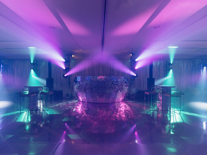 The evening closed with servers bearing blue “revitalizing” shots leading guests into the afterparty – a metallic silver ballroom alive with haze, lasers, a pewter dance floor, and a curved paillette DJ booth. An electric, bioluminescent finale to a night built entirely around transformation.