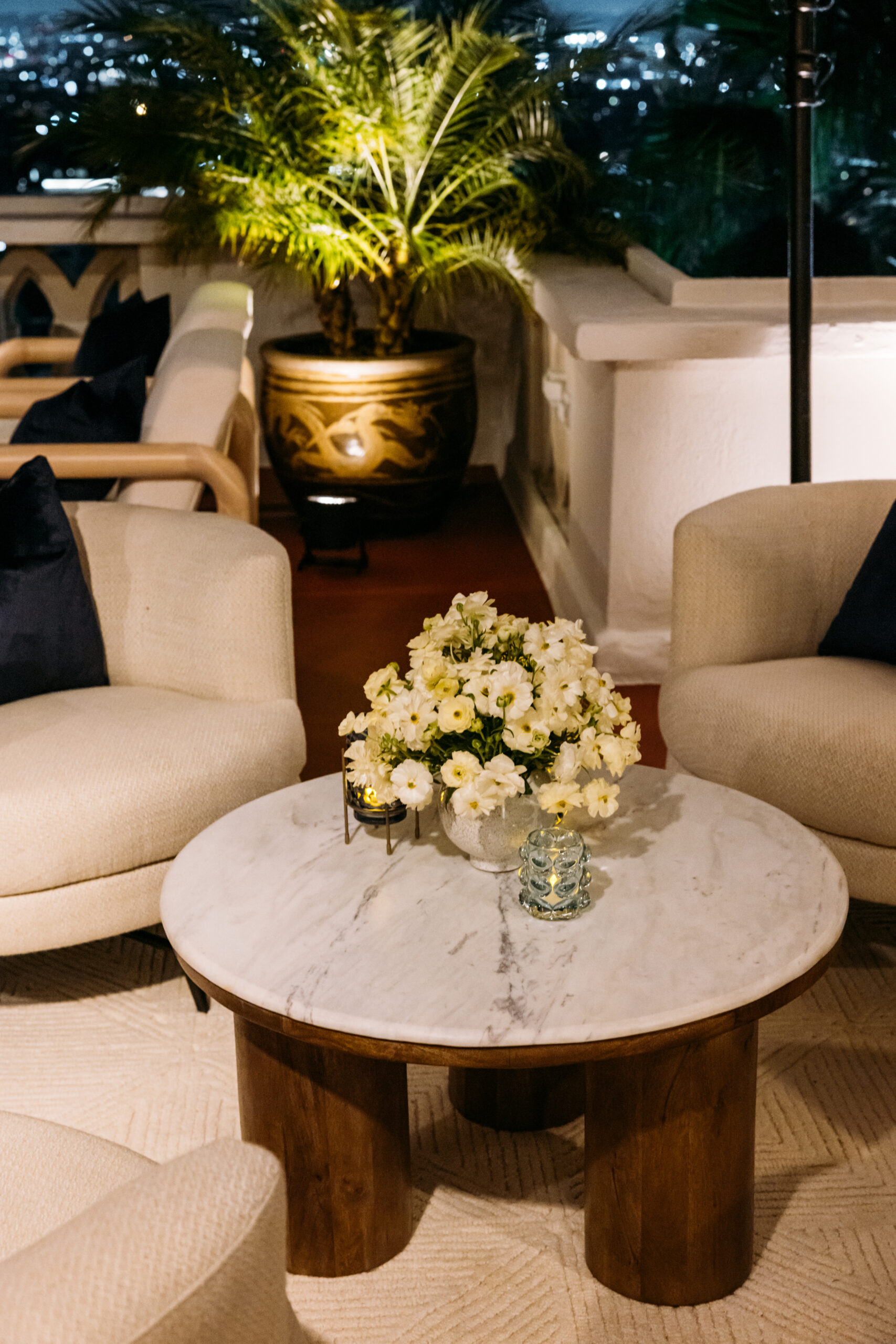Following the premiere, guests transitioned to an intimate after party at Chateau Marmont, where the tone shifted from theatrical spectacle to layered, late-night sophistication. The experience carried forward the narrative sensibility of the series while softening into a more atmospheric, design-forward celebration – effortless, curated, and distinctly Los Angeles. In collaboration with ELLE, Esquire, and Peacock, the event moved seamlessly from red carpet debut to after-hours gathering, creating a cohesive guest journey that felt immersive, intentional, and just a little bit surreal, true to the spirit of The Miniature Wife.